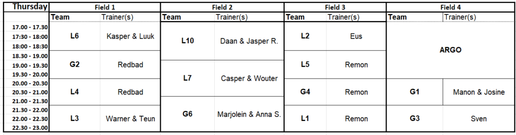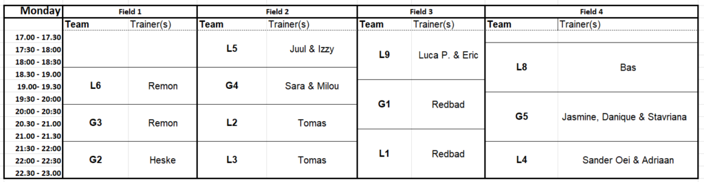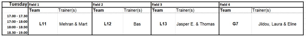Trainingschedule All trainings take place on Mondays, Tuesdays and Thursdays in Sports Centre De Bongerd.